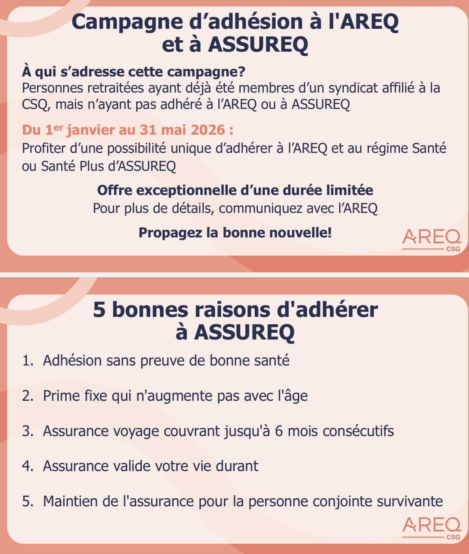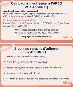 Nous vous invitons à visiter notre site internet à l’image de la nouvelle présentation de l’AREQ et qui regorge d’éléments intéressants. Si vous visitez notre site pour la première fois, cliquer sur ACCUEIL