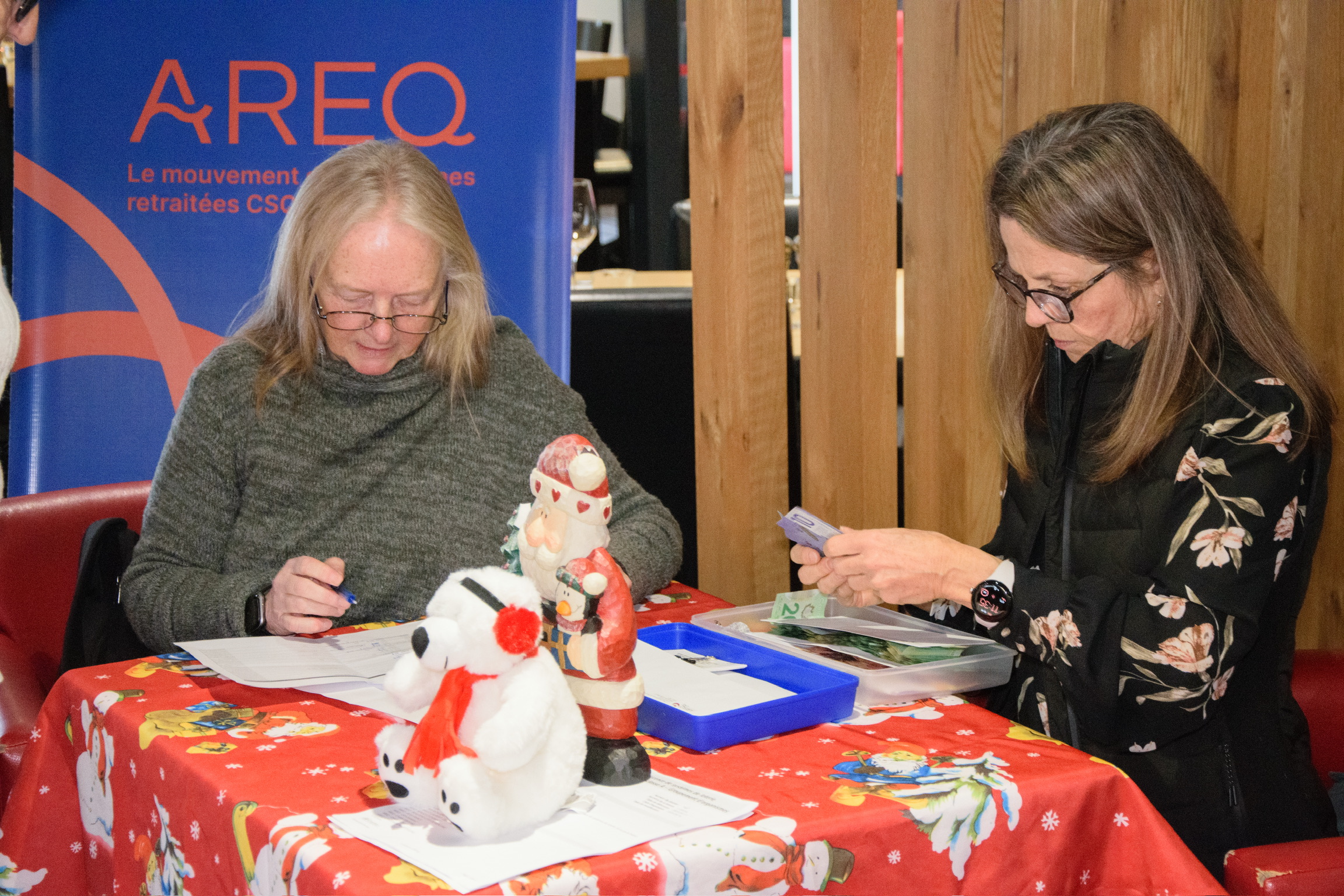 Nous avons tenu notre dernière rencontre pour l’année 2024, le jeudi 12 décembre. Ce sont 66 personnes qui se sont réunies pour célébrer ce moment festif de l’année. Nous avons vécu ce moment d’échanges en toute simplicité, surtout dans le plaisir de se retrouver. Le tirage moitié-moitié pour la fondation Laure-Gaudreault a permis de recueillir 236$, la gagnante du tirage Yvette Guimond a remporté une cagnotte de 118$. Le Conseil sectoriel a remis 2 cartes cadeaux de 40$ pour des spectacles chez Spect’Art Rimouski, ainsi que des billets d’entrée au Cinéma Lido pour une valeur de 30$. Nos amis de la Porte ouverte sur les mots (Georgette Renaud et Daniel Projean) ont gracieusement offert un volume.