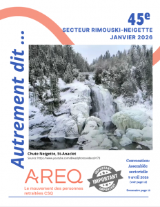 Pour vous inscrire, c’est par courriel aussi en mentionnant votre nom, numéro de téléphone, numéro de membre de l’AREQ, le tout avant mardi 20 janvier.
